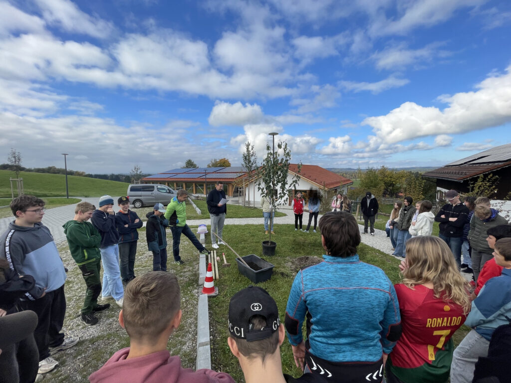 Am Dienstag, den 14.10.2025 wurde auf dem Schulgelände ein Korbinians-Apfelbaum gepflanzt.