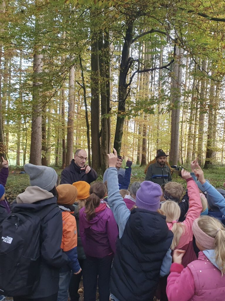 Am Dienstag, den 21.10.2025 verbrachten die Klassen 3/4a, b und c einen spannenden Tag im Wald, begleitet von Förster Herrn Schlenz und seinem Team rund um das AELF Holzkirchen / Walderlebniszentrum (WEZ), der Waldbesitzervereinigung Wolfratshausen sowie Bürgermeister Rainer Kopnicky.