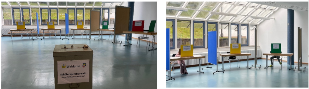 Am 30. September 2025 war es schließlich soweit: Die Wahl der Schülersprecherinnen fand statt – und das unter fast echten Wahlbedingungen. Mit Unterstützung der Gemeinde Königsdorf, die freundlicherweise eine echte Wahlurne zur Verfügung stellte, und dank der engagierten Mithilfe des evangelischen Religionskurses der 7. bis 9. Jahrgangsstufe, wurde die Wahl professionell und fair durchgeführt.
